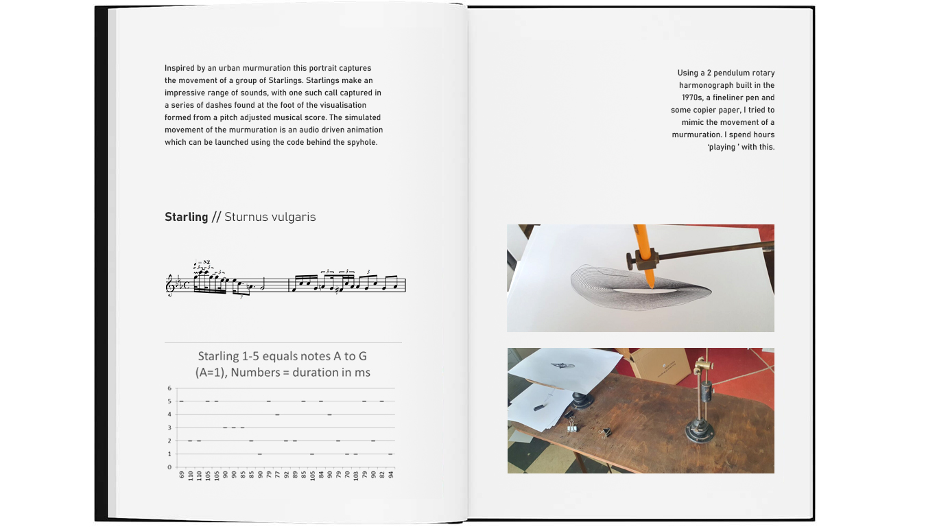 The Starling, known for its murmuration, largely unknown for the flocks’ ability to interfere with Wifi signals. Perhaps they are saying “look at this display? – turn off your devices and look!”. To visualise a murmuration requires a specialist piece of machinery – built in 1972, the harmonograph provided hours of mesmerising, unrepeatable and unpredictable results.